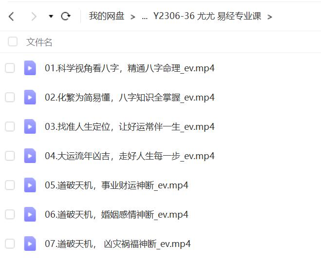 尤尤-易经八字专业课视频7集,一套精简型的八字命理课程,适合初学者。