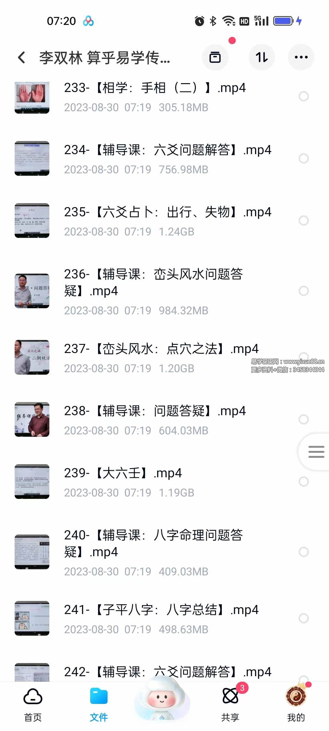 重磅好课:2023年 李双林 算乎易学传承课 二期课程,总共436集,总容量400G+,涵盖多种易学(风水、八字、奇门、面相、六爻、紫薇占星等),每集2到4小时