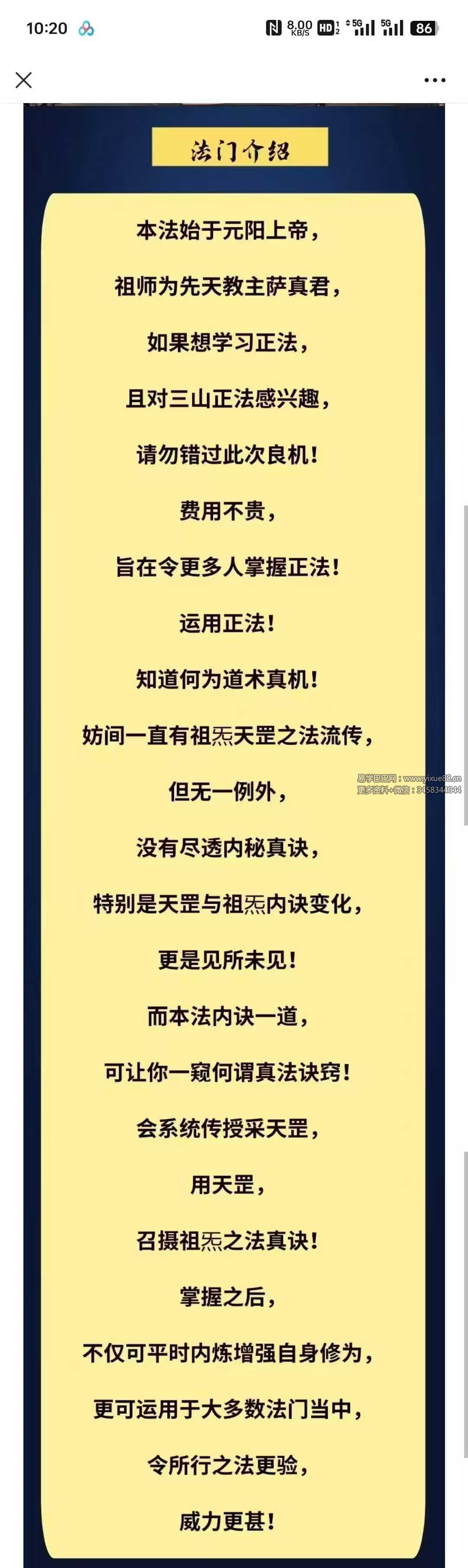 本法始于元阳上帝,祖师为先天教主萨真君,如果想学习正法,且对三山正法感兴趣,请勿错过此次良机!费用不贵,旨在令更多人掌握正法!运用正法!